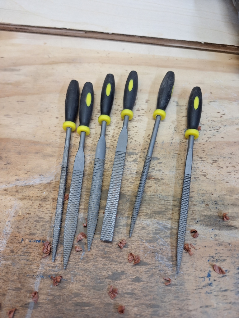 OK! Lets give it a go! The weather outside is frightful but inside it’s …. also kind of cold. Either way, there’s no way I’m going outside to craft so I will instead begin revamping my shop. Beginning with a french cleat wall! Rasps are up first. This is an inexpensive but nice set that has served me well for years.